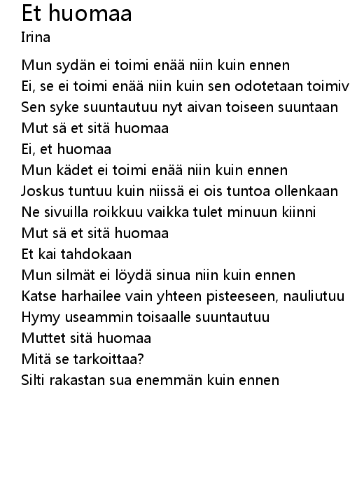 | Song | Et huomaa |