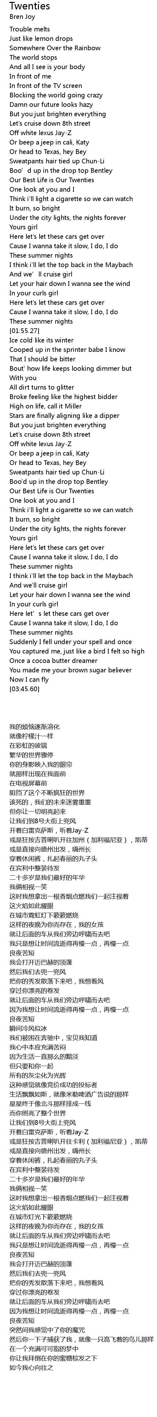 | [02:35.18] | Our Best Life is Our Twenties |