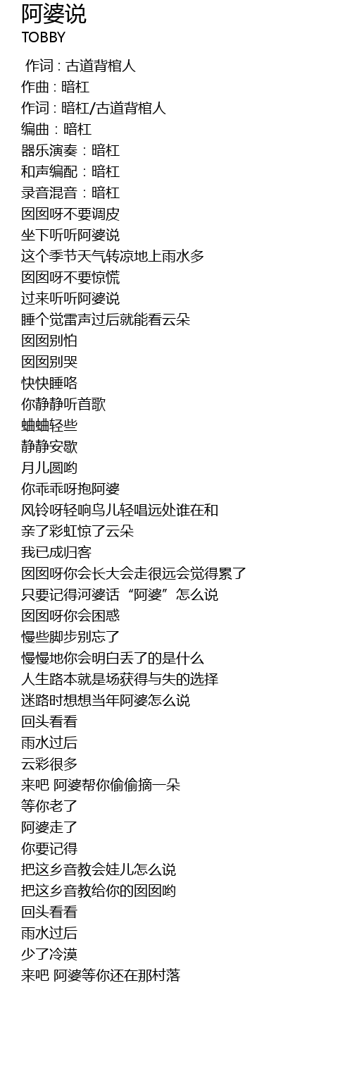 | [00:31.145] | 过来听听阿婆说 |