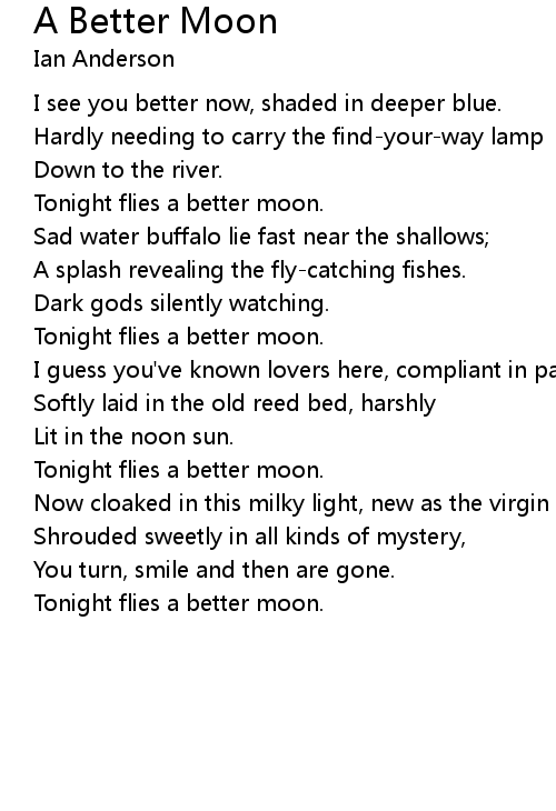 Tonight flies a better moon. |