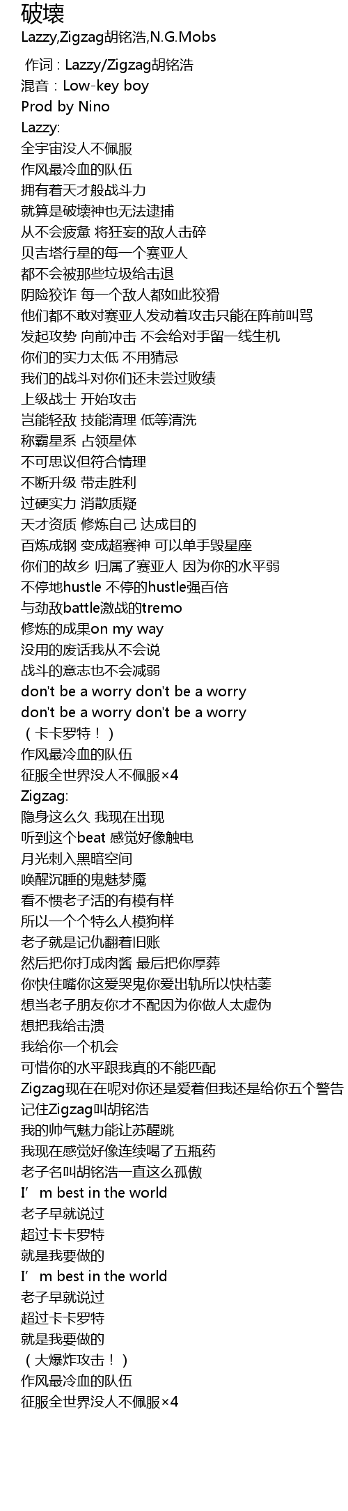 | [00:00.000] | 作词 : Lazzy/Zigzag胡铭浩 |