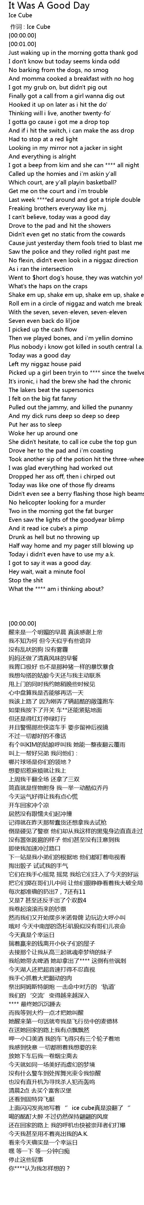 | [00:00.00] | 作词 : Ice Cube |