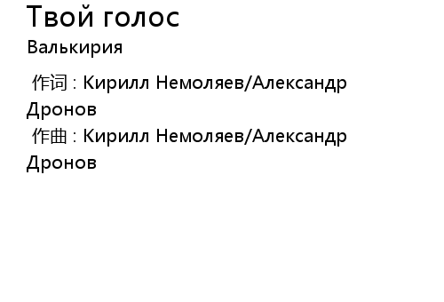 | [00:00.000] | 作曲 : Кирилл Немоляев/Александр Дронов |