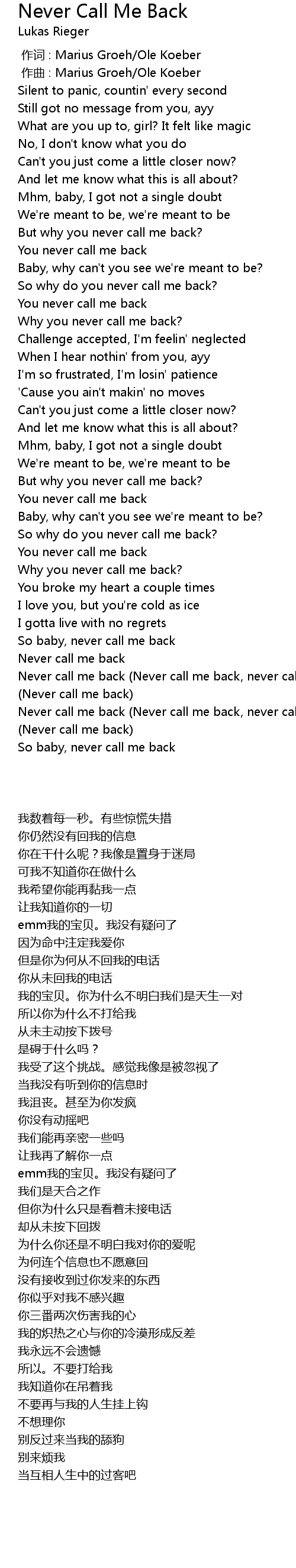 | [02:52.00] | Never call me back (Never call me back, never call me back) |