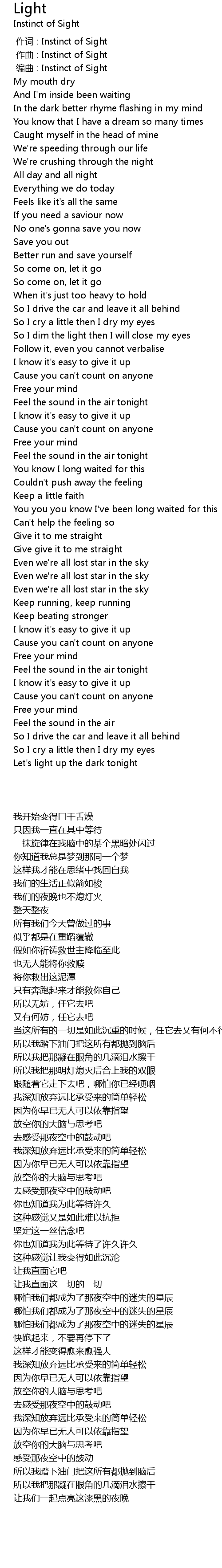| [00:01.000] | 作曲 : Instinct of Sight |
