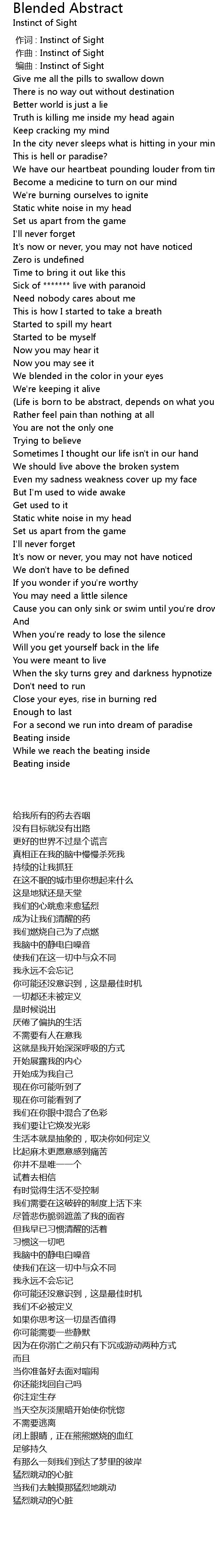 | [00:00.000] | 作词 : Instinct of Sight |