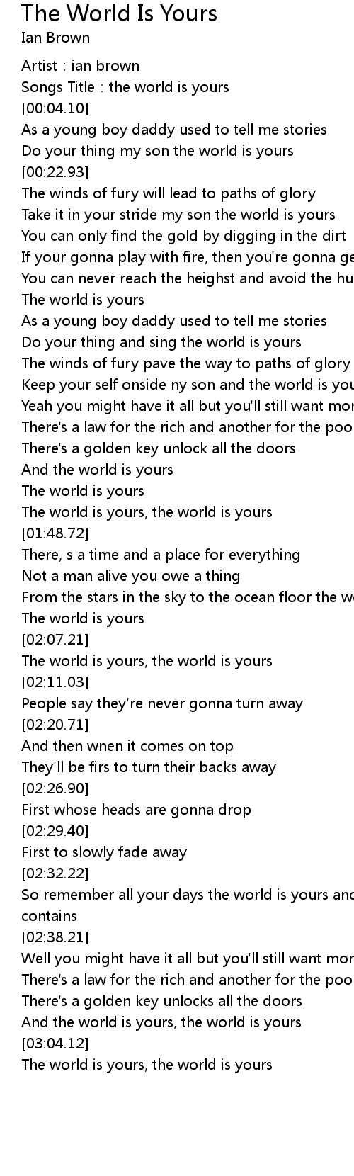 | [00:02.11] | Songs Title:the world is yours |