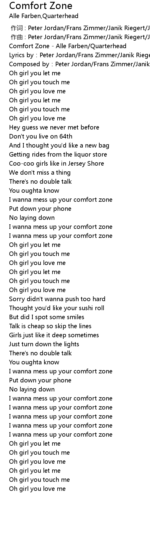 | [00:00.100] | Comfort Zone - Alle Farben/Quarterhead |