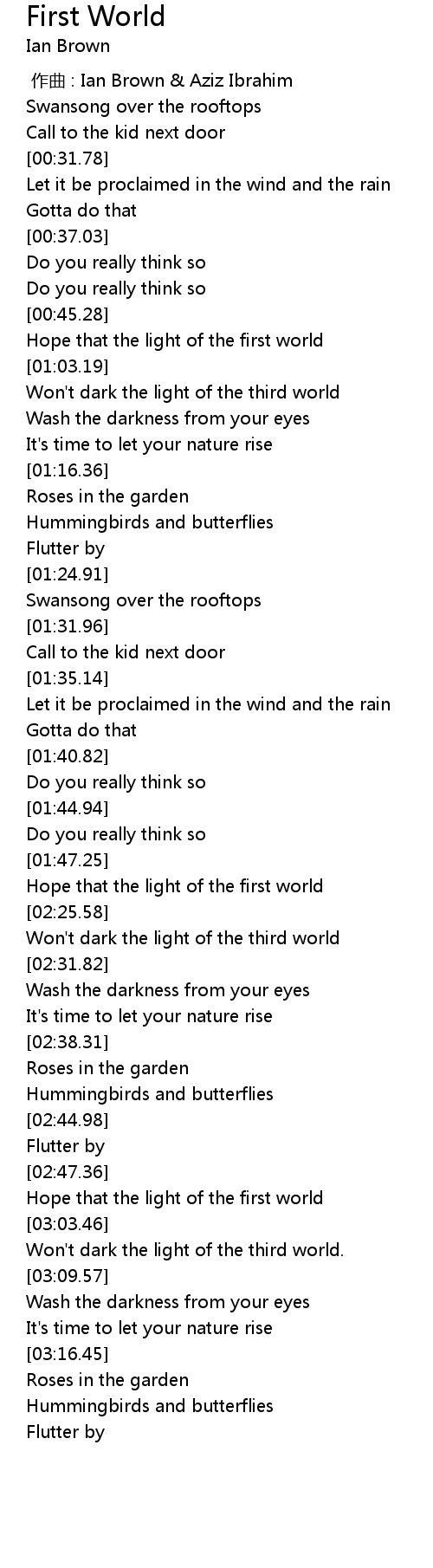 | [02:27.20] | Won't dark the light of the third world |