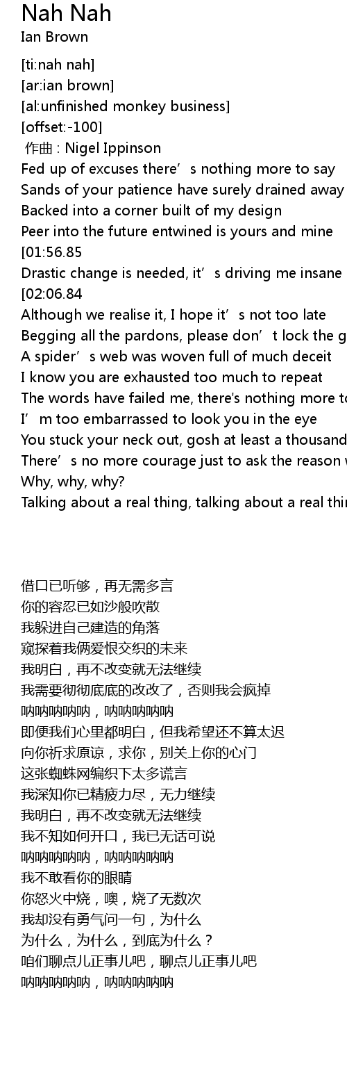 | [01:03.59][02:06.84][03:23.75] | Nah nah nah nah nah, nah nah nah nah nah |