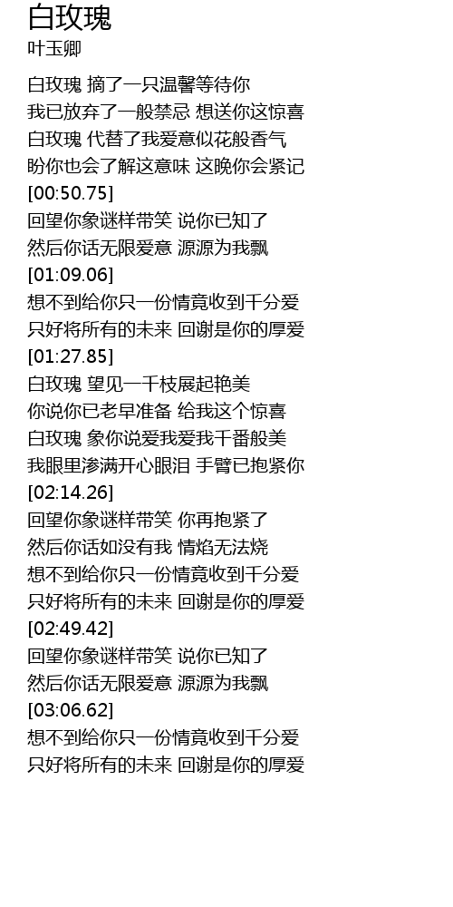 | [01:57.63] | 白玫瑰 象你说爱我爱我千番般美 |