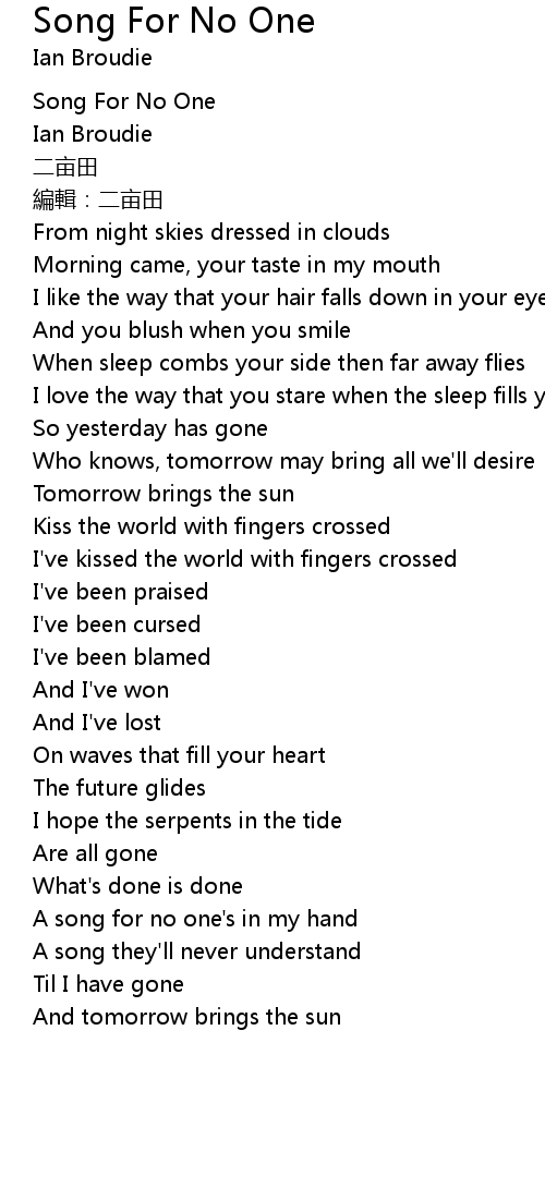 | [01:44.60] | A song for no one' s in my hand |