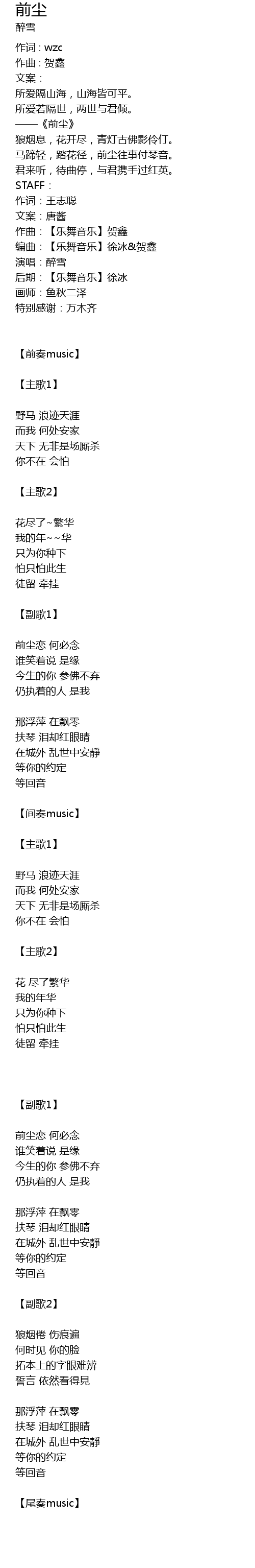 | ma ti qing, ta hua jing, qian chen wang shi fu qin yin. | |
