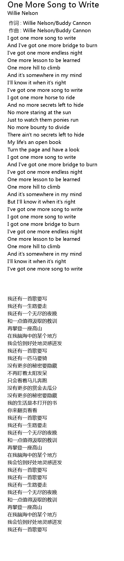 | [00:01.000] | 作曲 : Willie Nelson/Buddy Cannon |