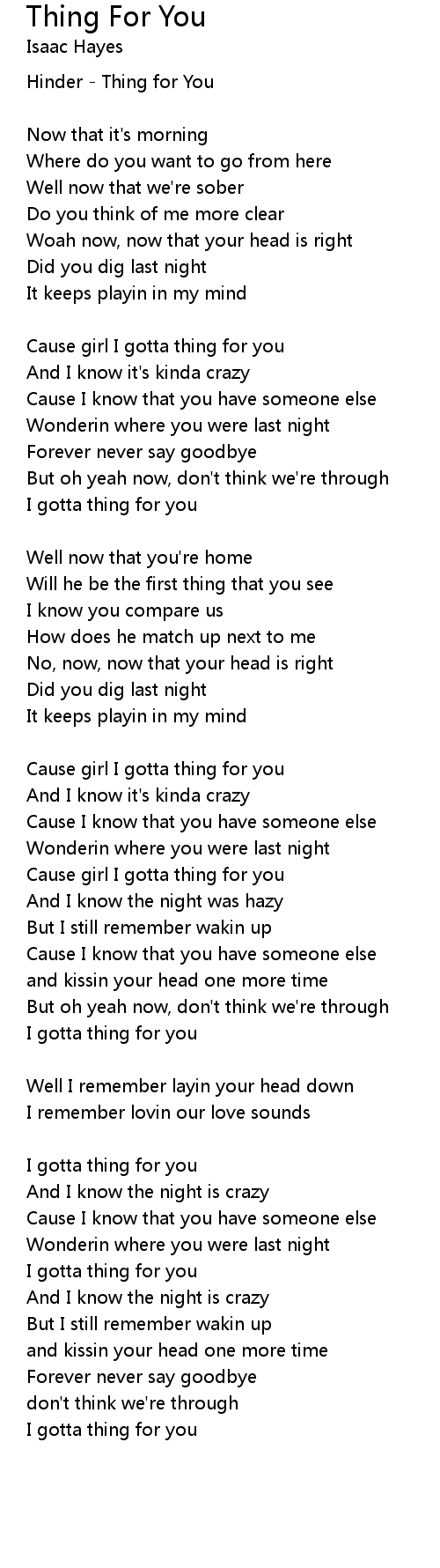 Cause girl I gotta thing for you |