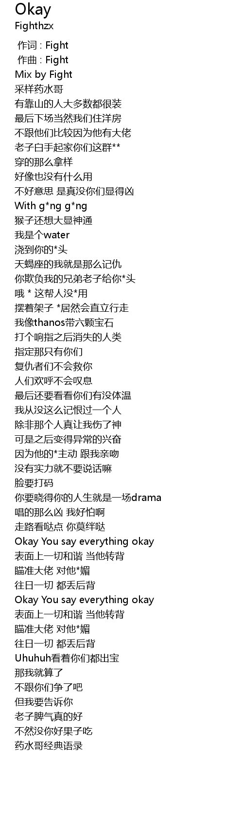 | [00:40.61] | 你欺负我的兄弟老子给你*头 |