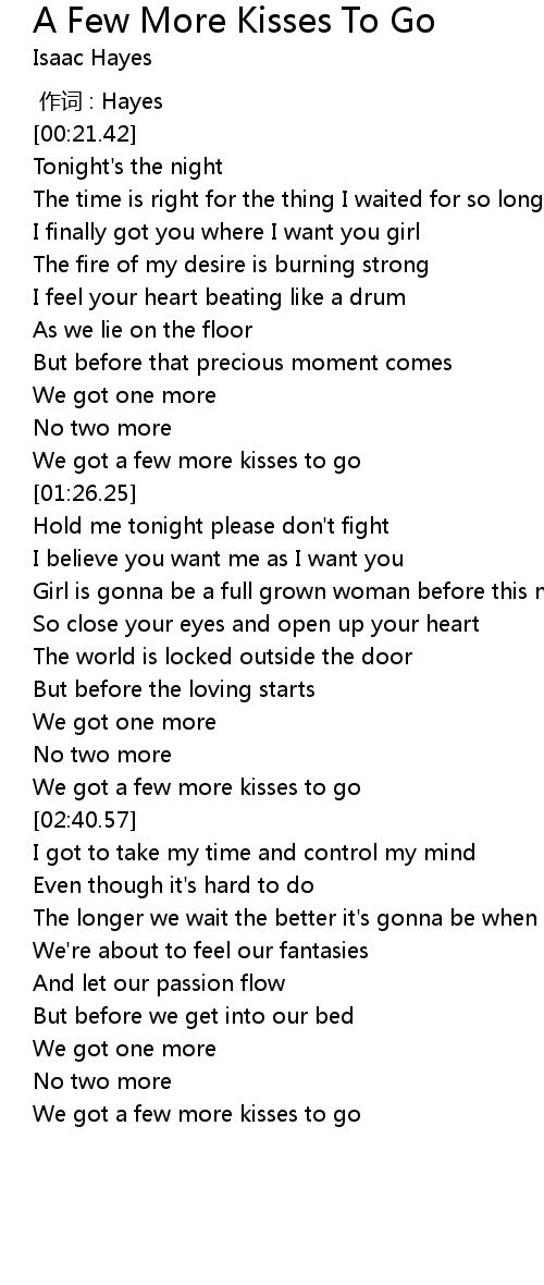 | [03:35.77] | The longer we wait the better it' s gonna be when I make love to you |