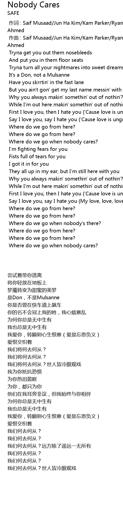 | [01:12.750] | Why you always makin' somethin' out of nothin'? |