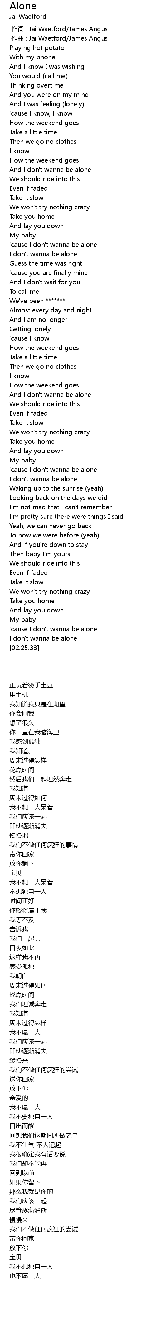 | [02:22.08] | I don' t wanna be alone |