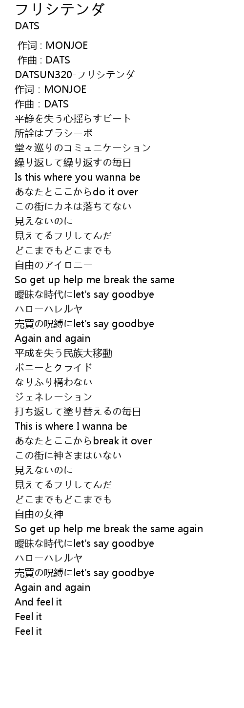 | [01:17.512] | 曖昧な時代にlet's say goodbye |