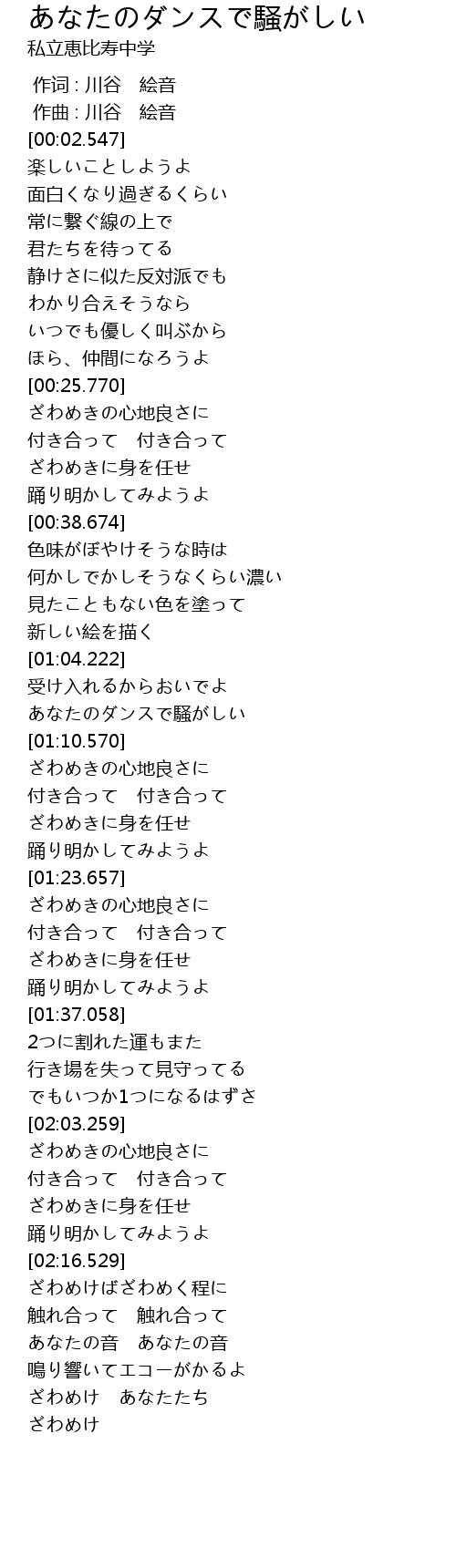 | [02:31.784] | ざわめけ あなたたち |