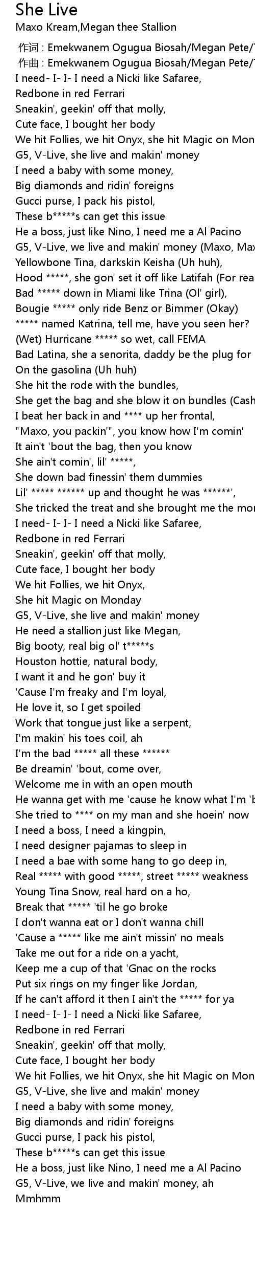 | [01:51.64] | Real ***** with good *****, street ***** weakness |