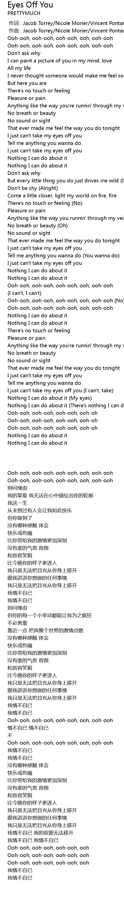 | [02:49.70] | I just can't take my eyes off you (I can't, take) |