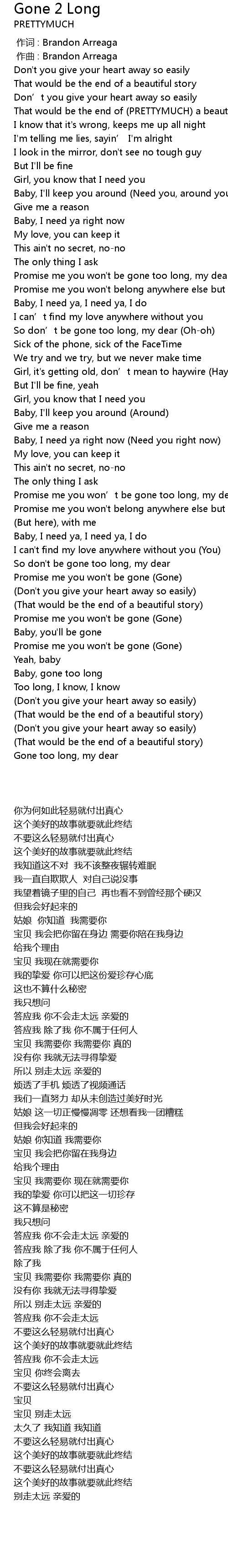 | [02:38.04] | Promise me you won't be gone (Gone) |