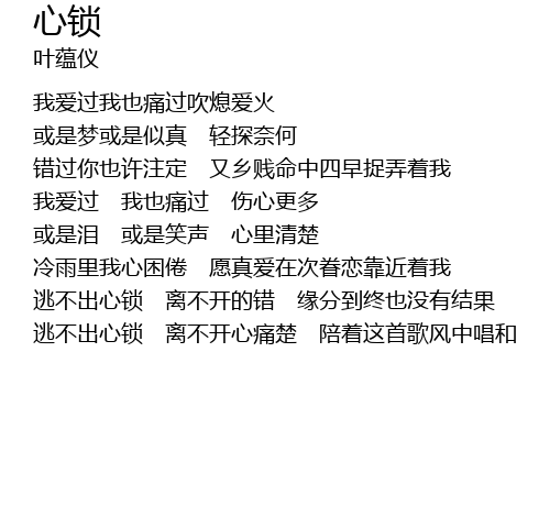 逃不出心锁 离不开心痛楚 陪着这首歌风中唱和