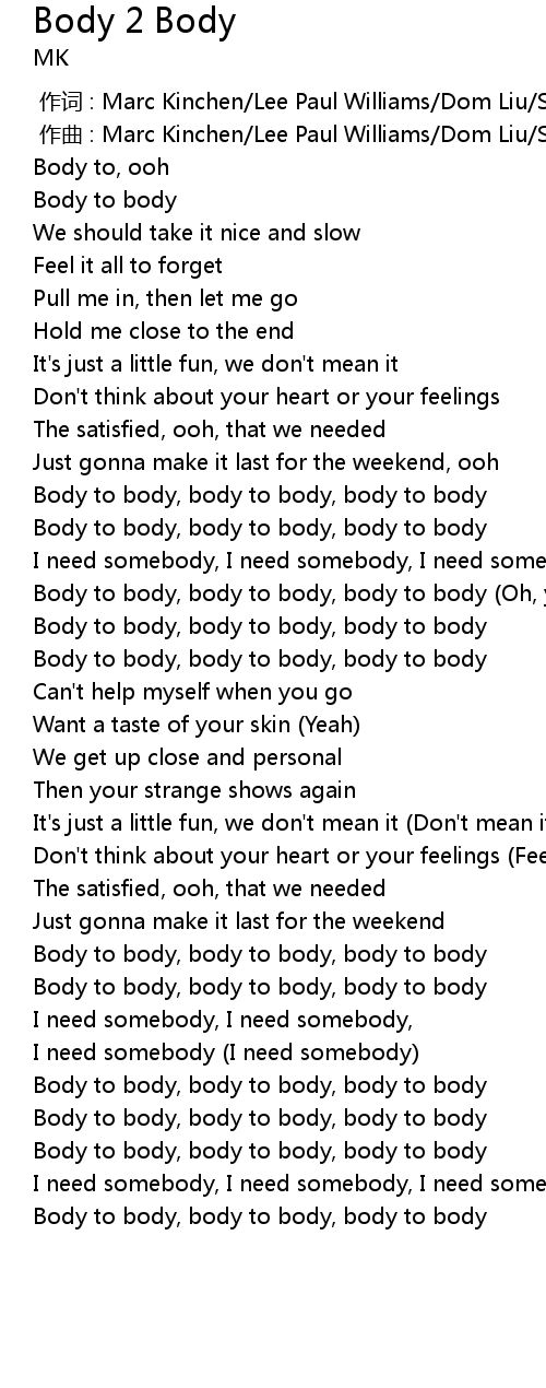 | [01:53.38] | Body to body, body to body, body to body |