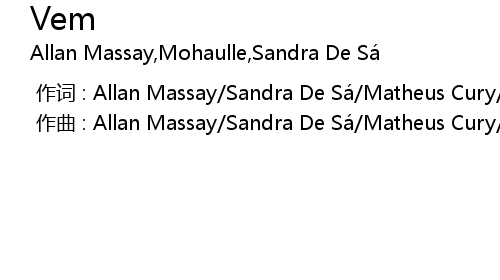 | [00:00.000] | zuò qǔ : Allan Massay Sandra De Sá Matheus Cury Rafael Mohaulle |