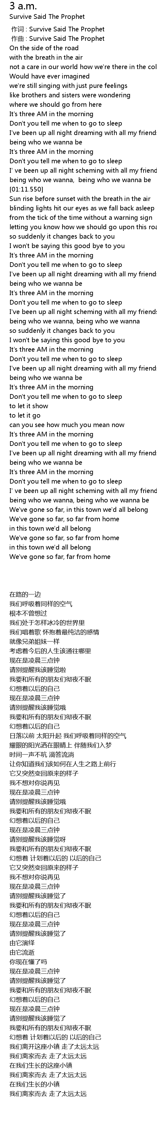| [01:57.910] | It' s three AM in the morning |