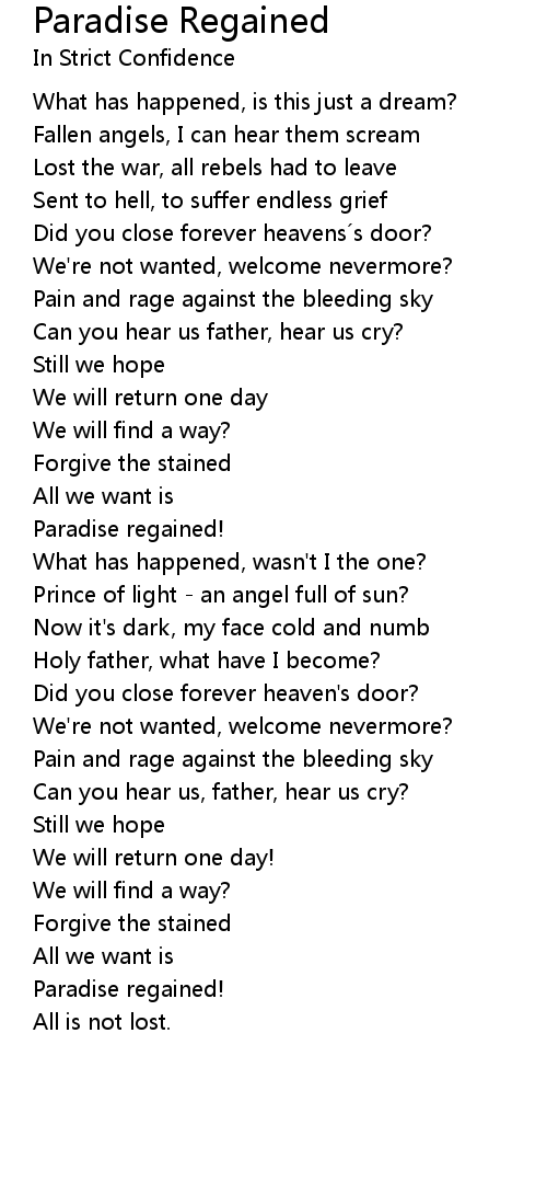 | Song | Paradise Regained |