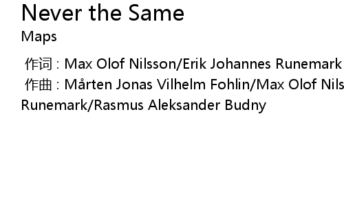 | [00:00.000] | 作词 : Max Olof Nilsson/Erik Johannes Runemark |