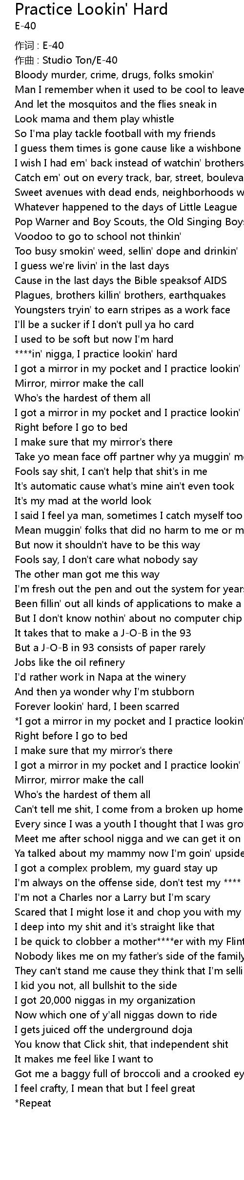 | I got a mirror in my pocket and I practice lookin' hard | |