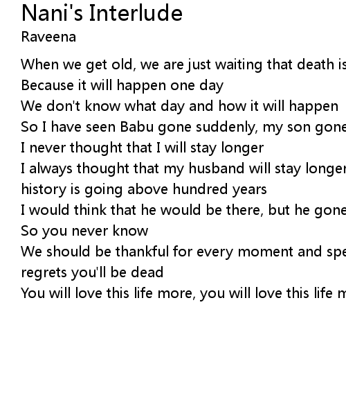 | [00:45.50] | I always thought that my husband will stay longer because his family history is going above hundred years |