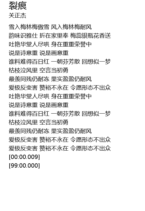 | [00:21.72] | xuě rù méi lín méi ào xuě fēng rù méi lín méi nài fēng |