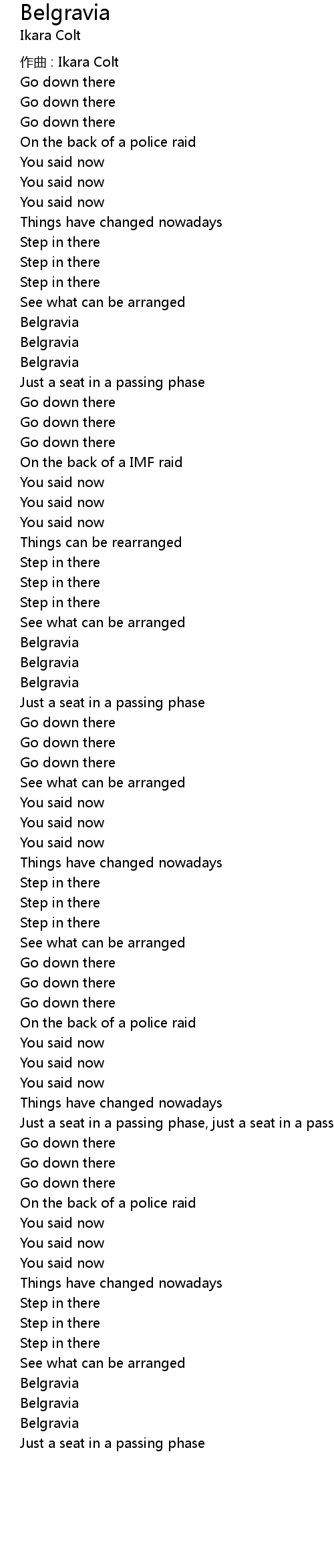 | Song | Belgravia |
