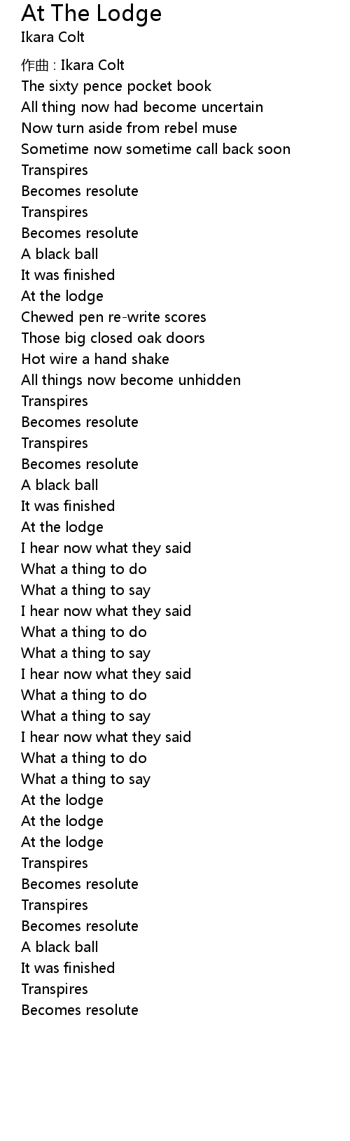 | Song | At The Lodge |