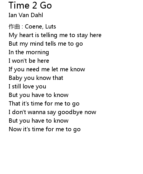 | Now it's time for me to go |