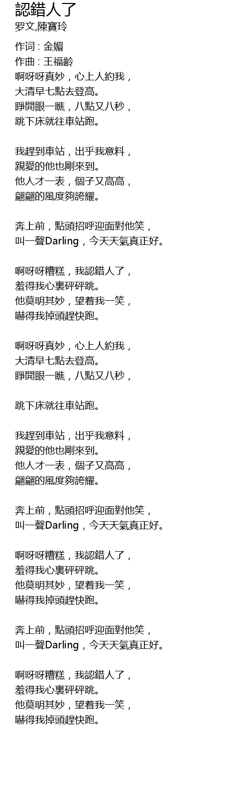 | ā yā ya zāo gāo, wǒ rèn cuò rén le, | |