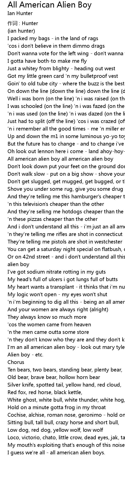 | ' n i' m beginning to dig all this being an all american alien boy | |