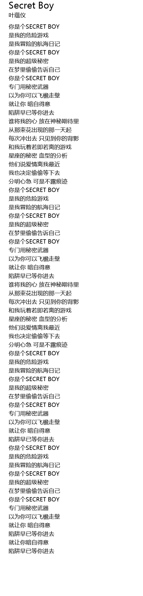 | [00:31.79] | nǐ shì gè SECRET BOY |