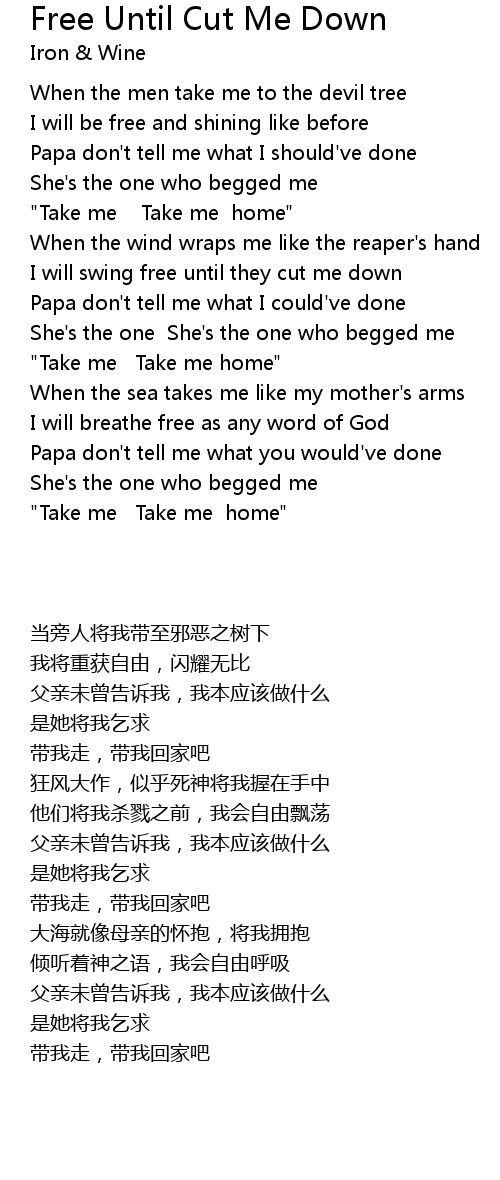 I will swing free until they cut me down |