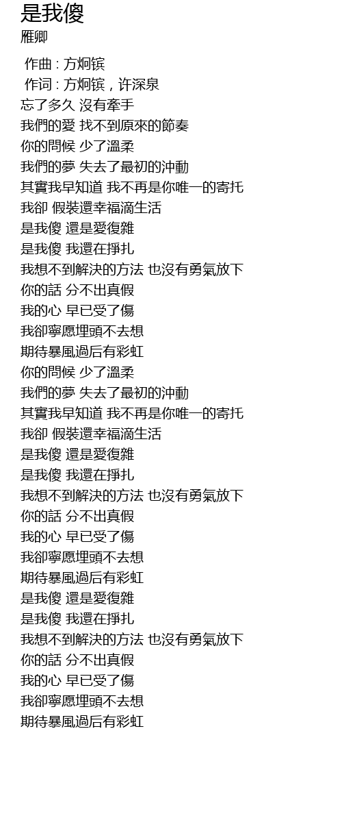 | [03:15.62] | 是我傻 還是愛復雜 |