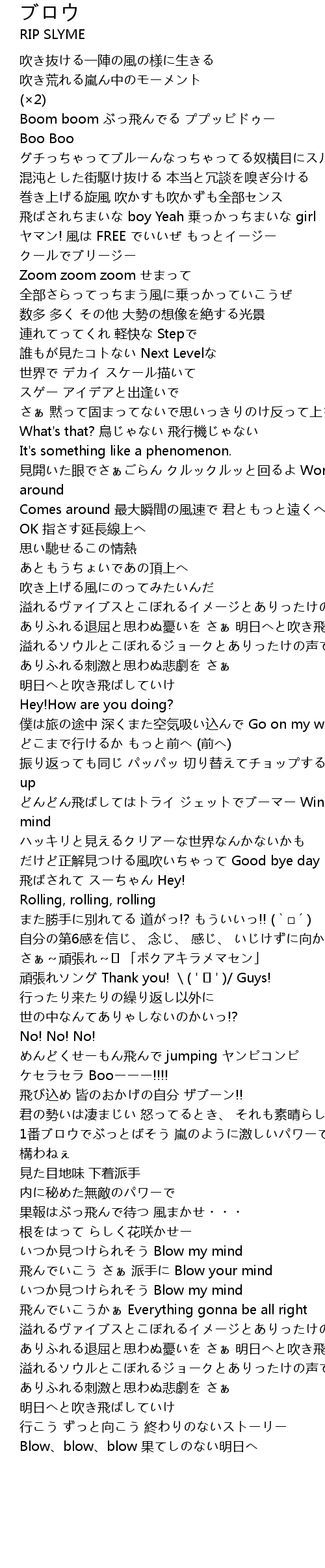 | どんどん飛ばしてはトライ ジェットでブーマー Windでblow my mind | |