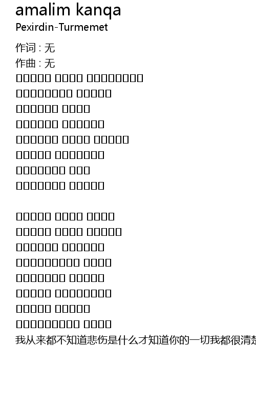 | wo cong lai dou bu zhi dao bei shang shi shen me cai zhi dao ni de yi qie wo dou hen qing chu wo de ai ren shuo wo de ming yong yuan dou zou le wo gen bie ren ku le wo hai mei rang ni zhi dao wo de ban fa zai ni mian qian xiao zhe shuo zai jian le |