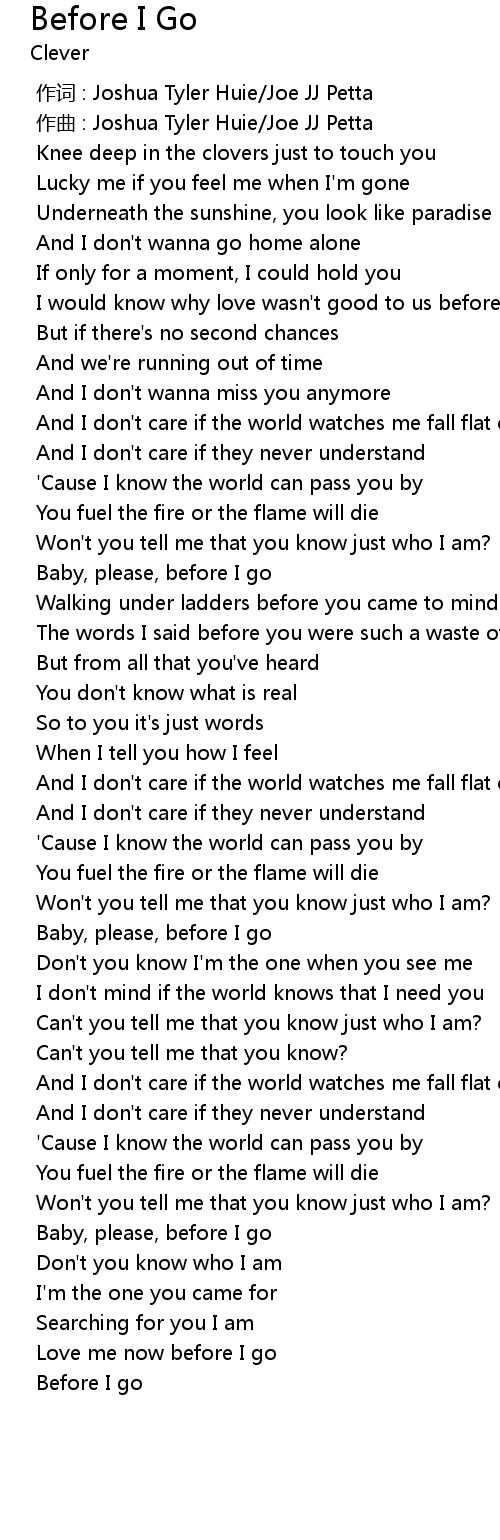 | [00:19.149] | Lucky me if you feel me when I' m gone |