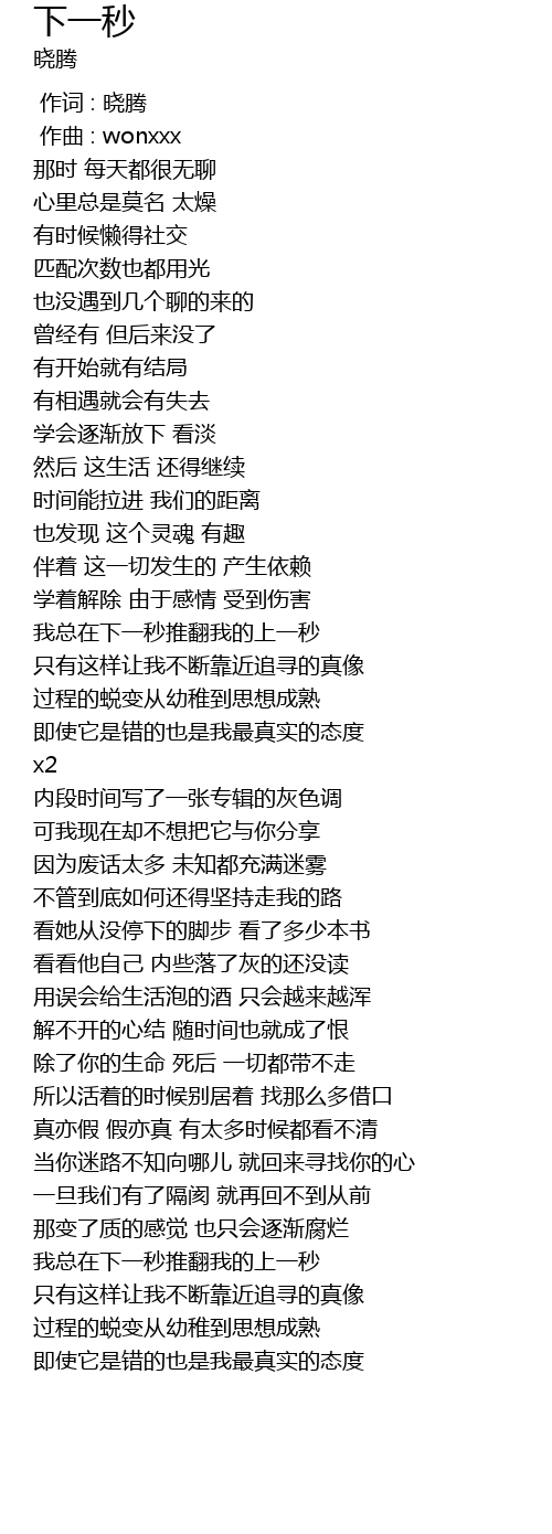 | [02:10.952] | 我总在下一秒推翻我的上一秒 |