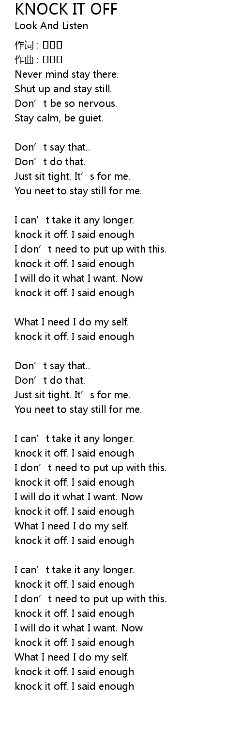 | Song | KNOCK IT OFF |